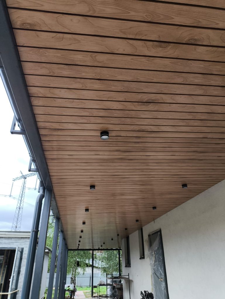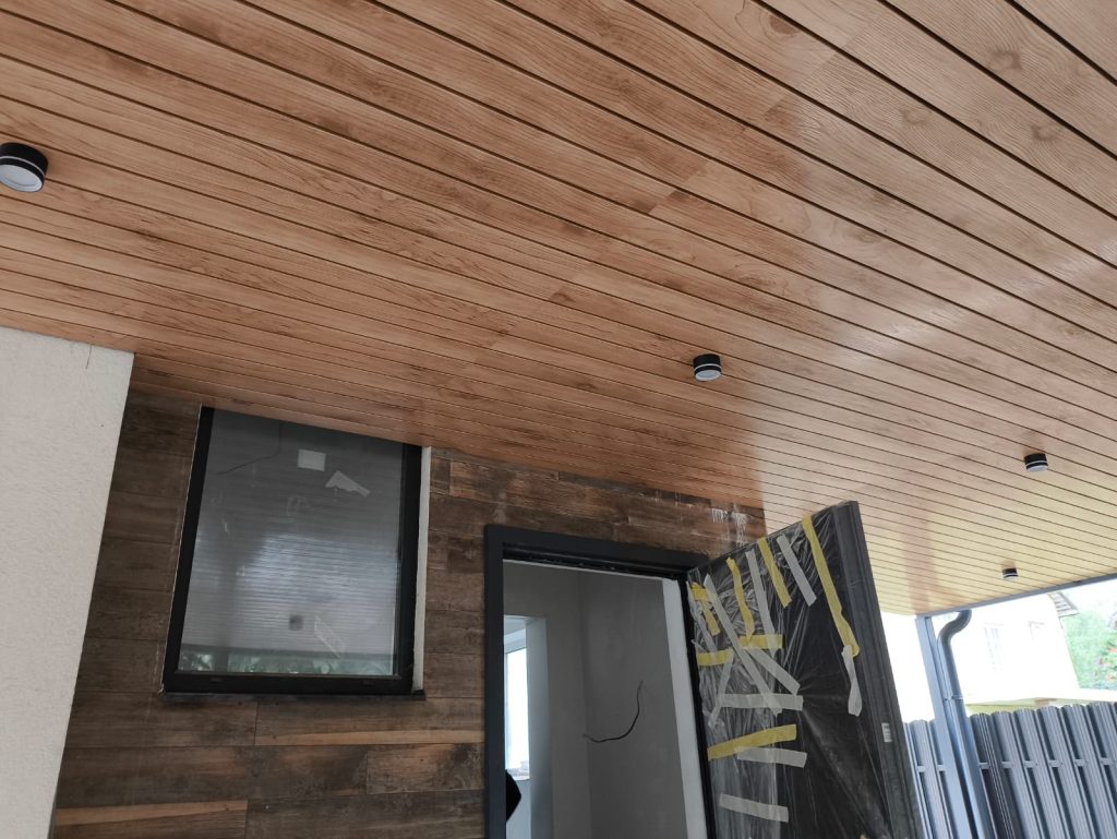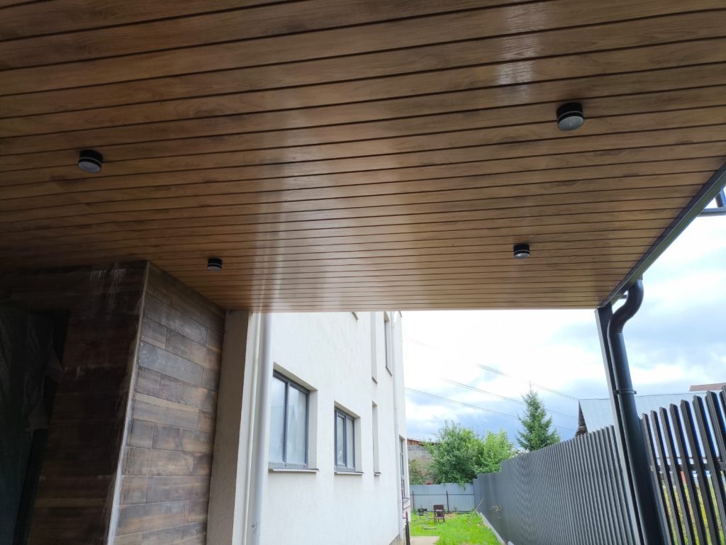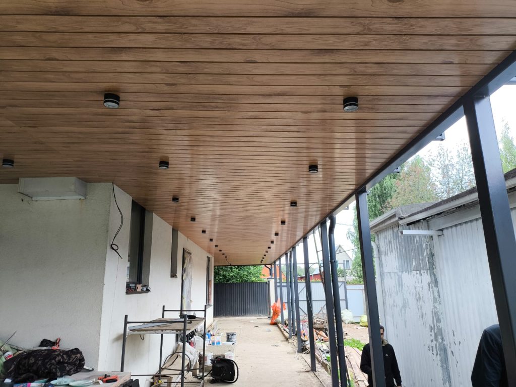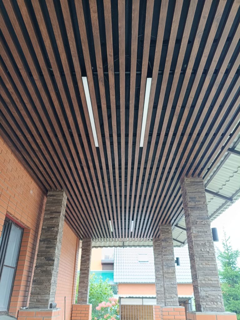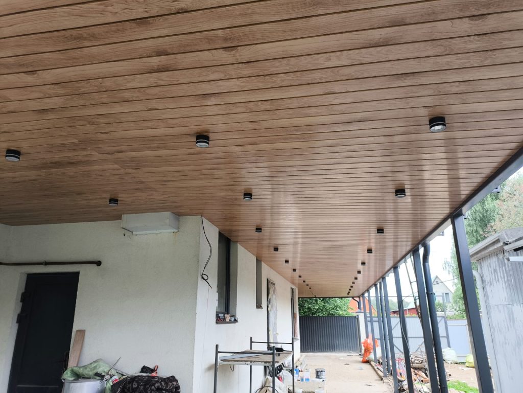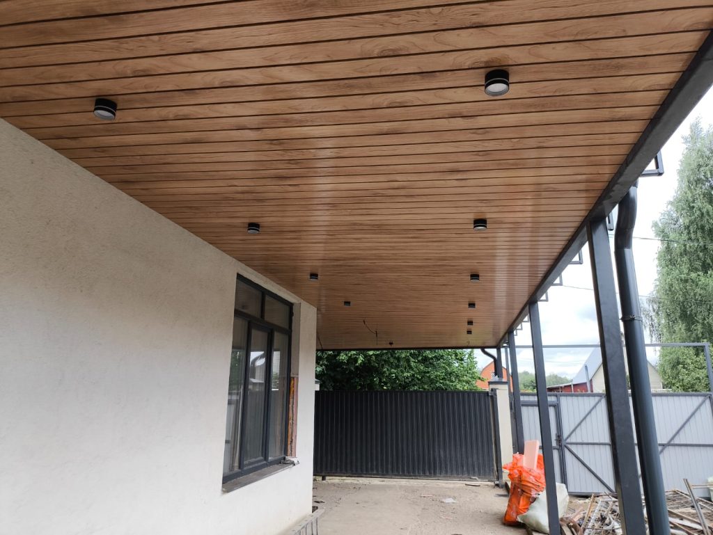 Проект Навесы. Загородный дом. Панель 50/50-40 Золотой Дуб 3Д. Светильник 1.0 м 45 Вт.