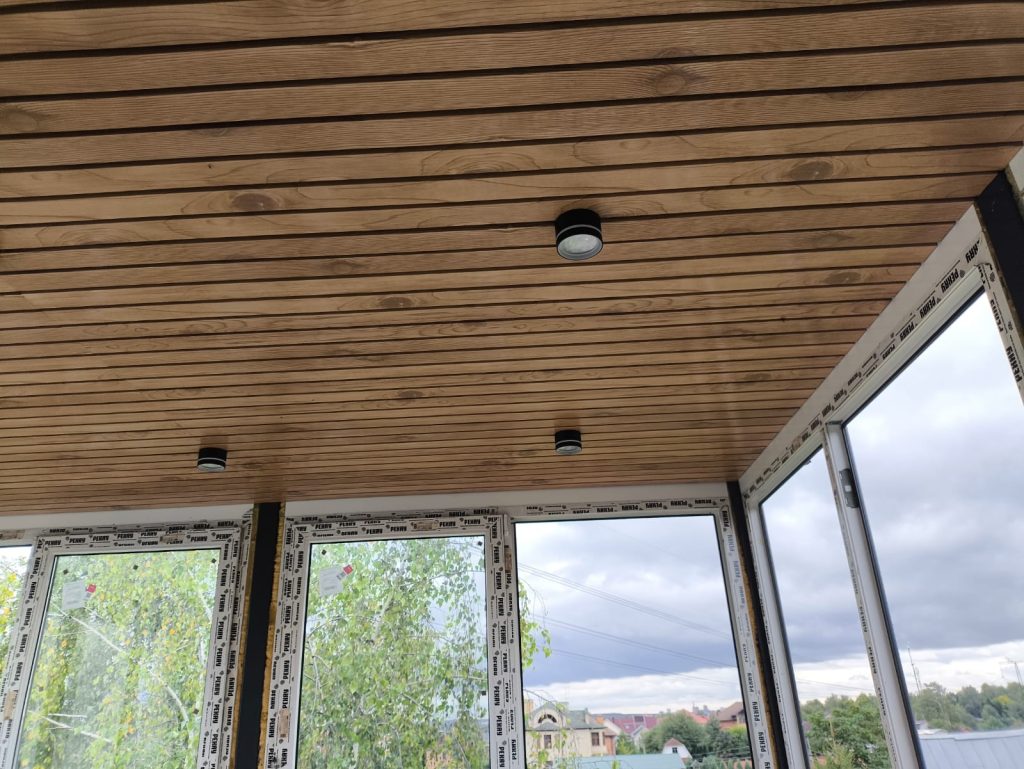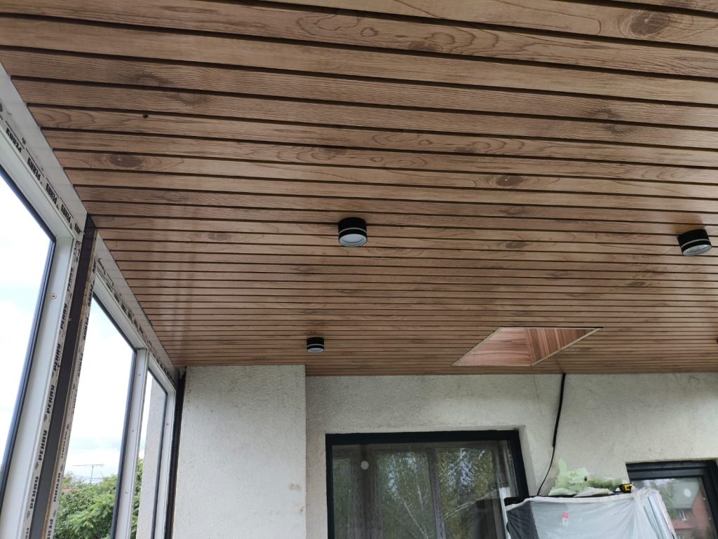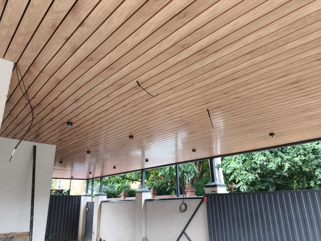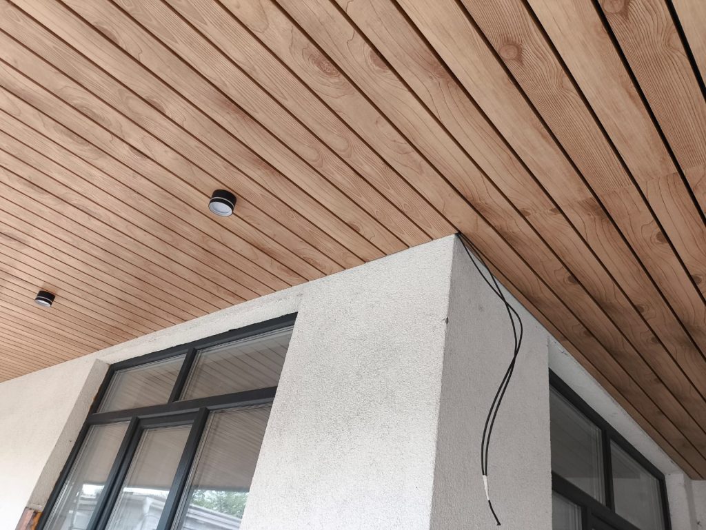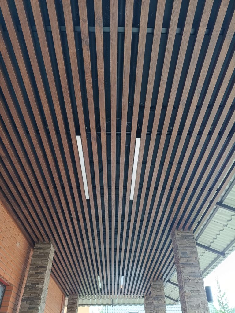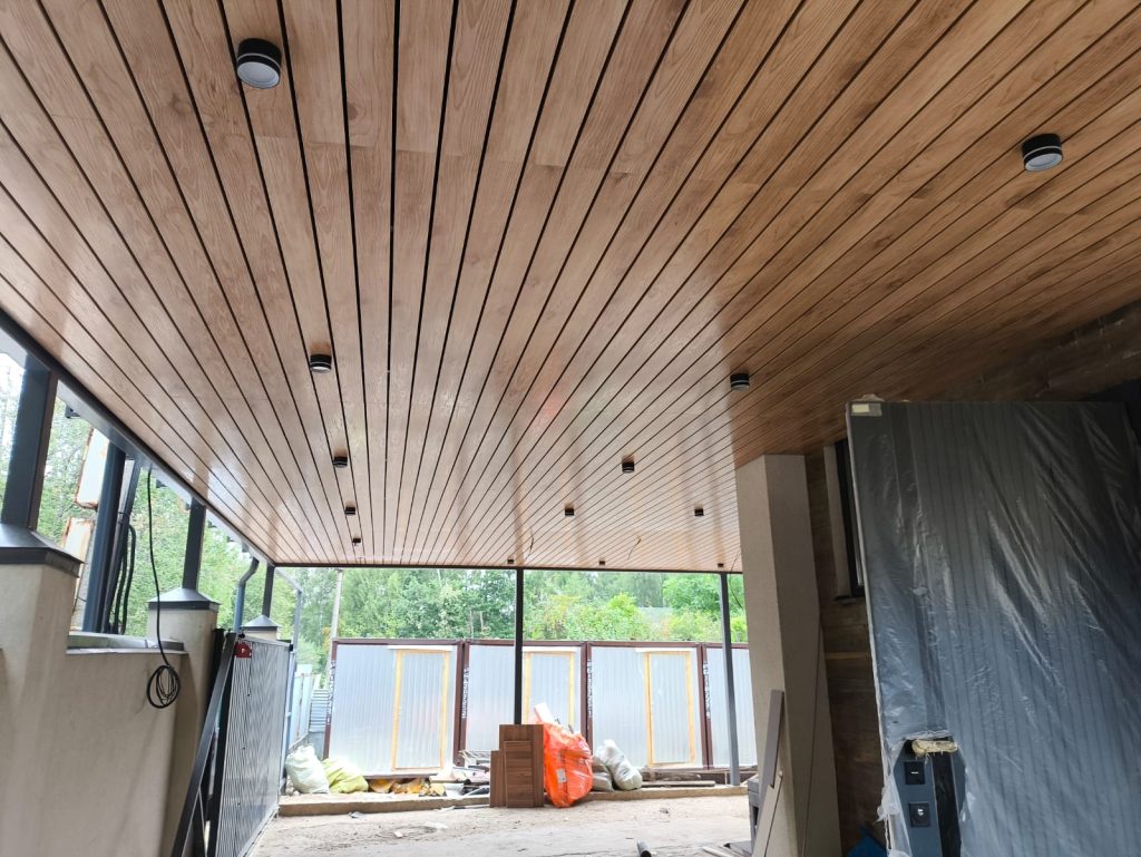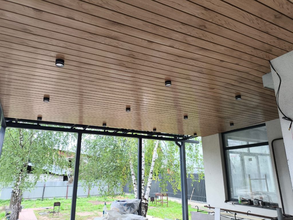 Проект Навесы. Загородный дом. Панель 50/50-40 Золотой Дуб 3Д. Светильник 1.0 м 45 Вт.