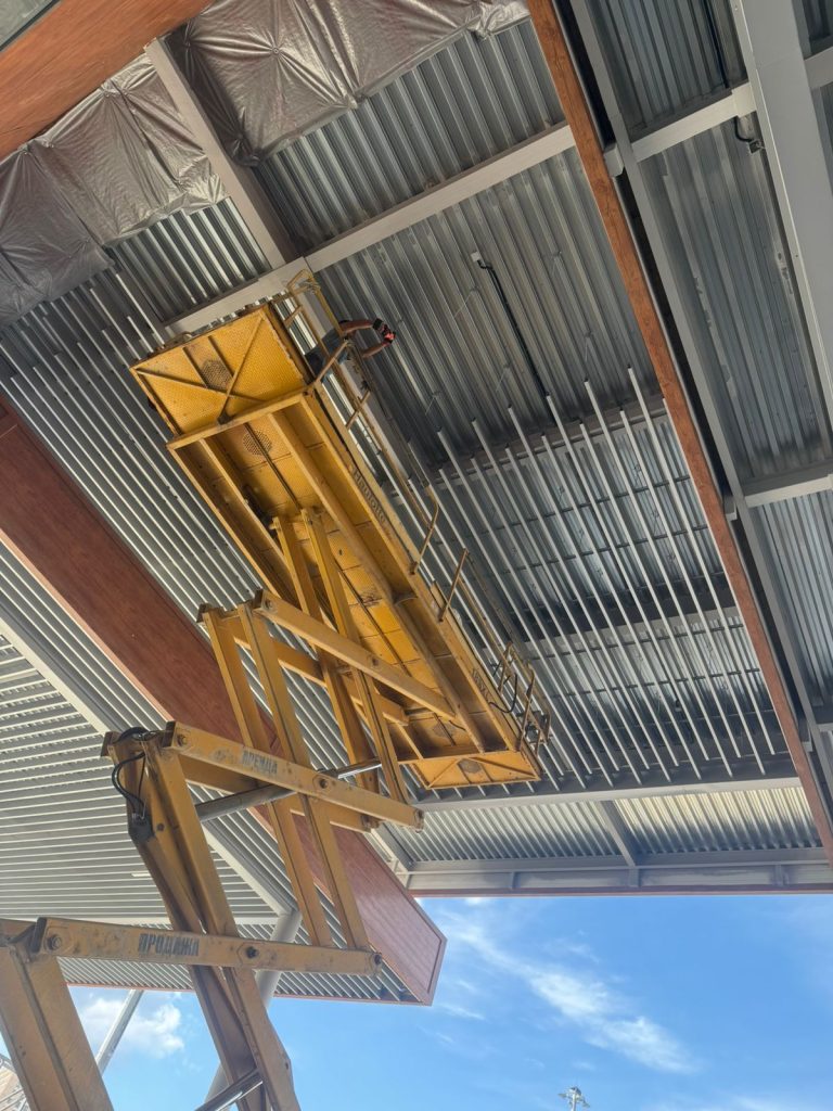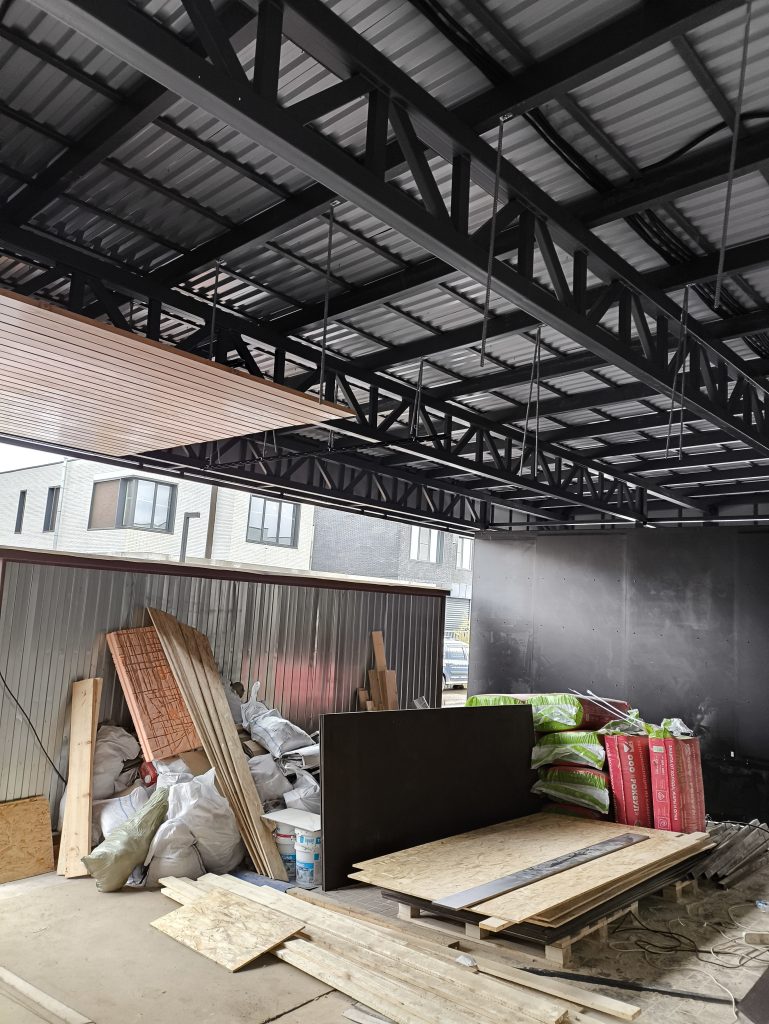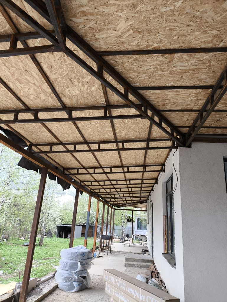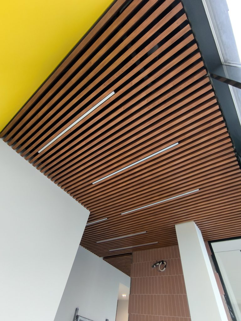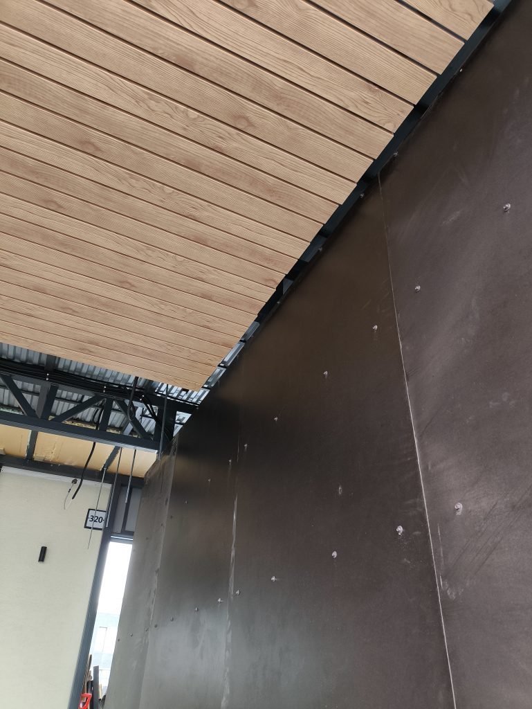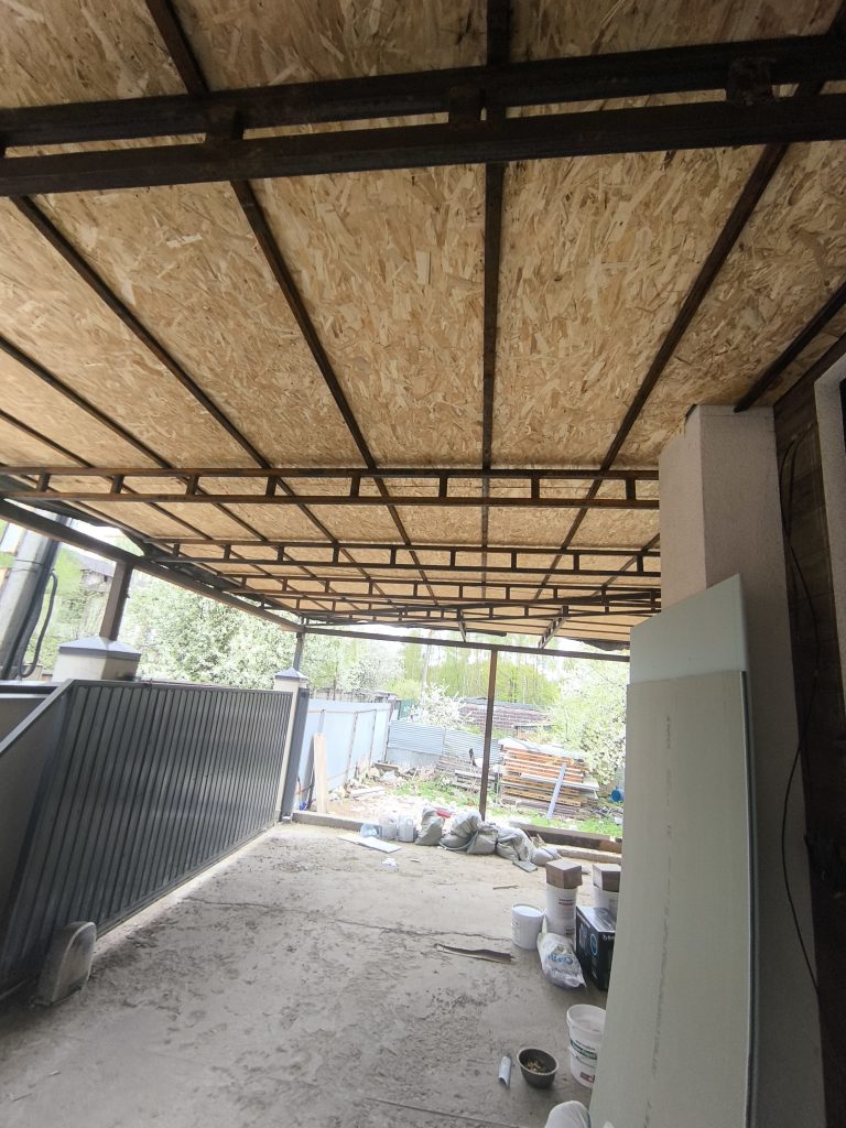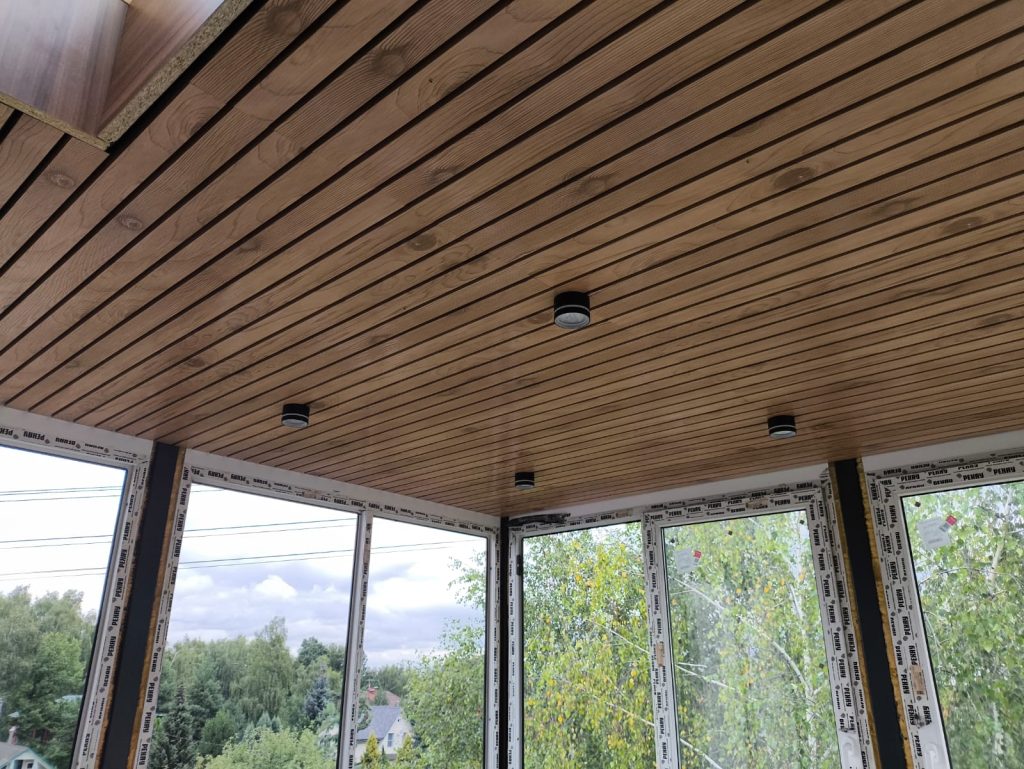 Проект Навесы. Загородный дом. Панель 50/50-40 Золотой Дуб 3Д. Светильник 1.0 м 45 Вт.