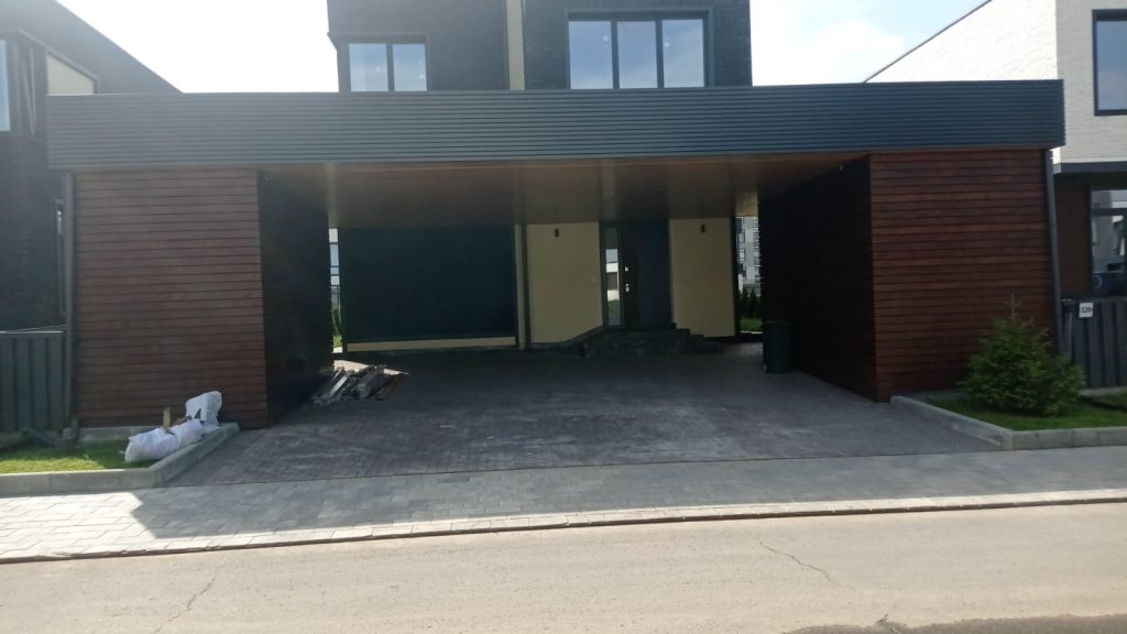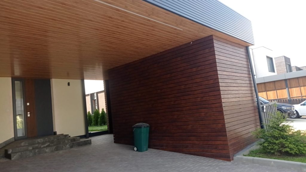 Проект Навес Загородный дом.Панель 100/30-10. Орех 3Д.
