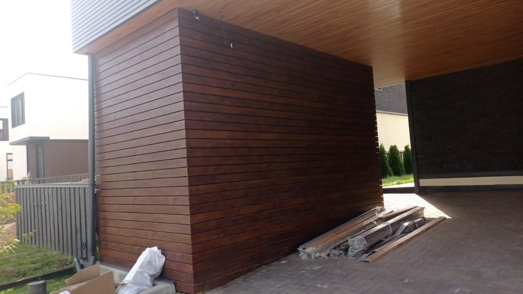Проект Навес и Хозблок. Панель 100/30 Орех 3Д и Дуб 3Д.