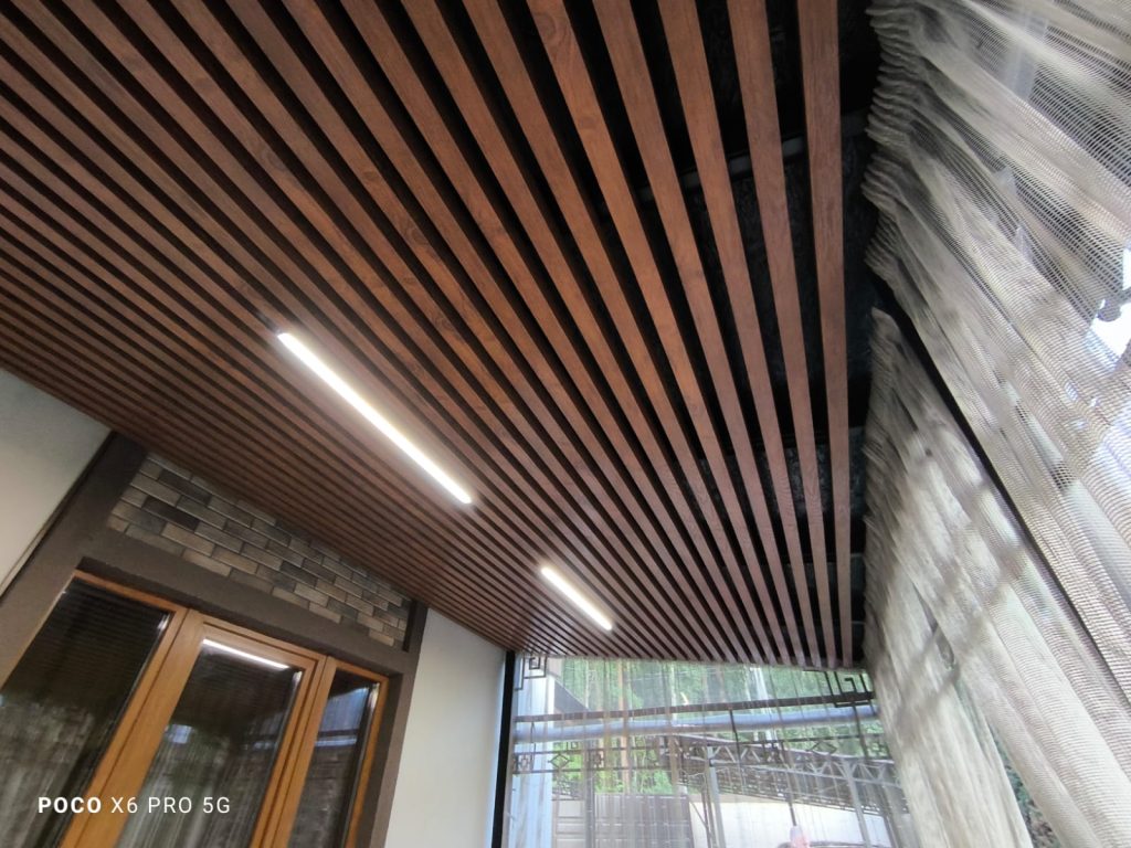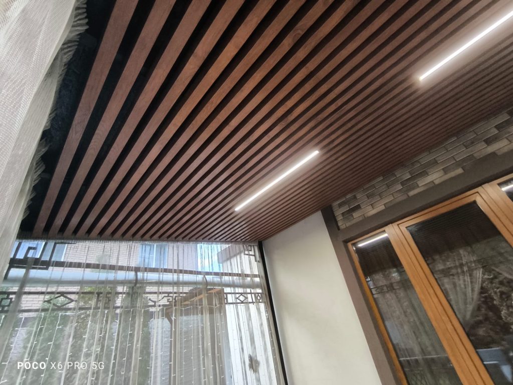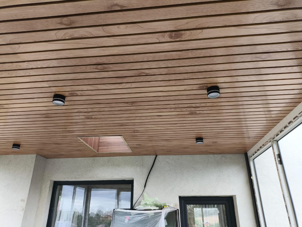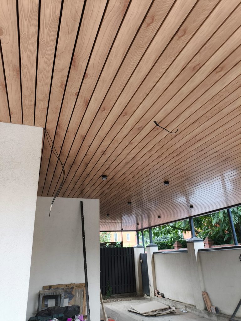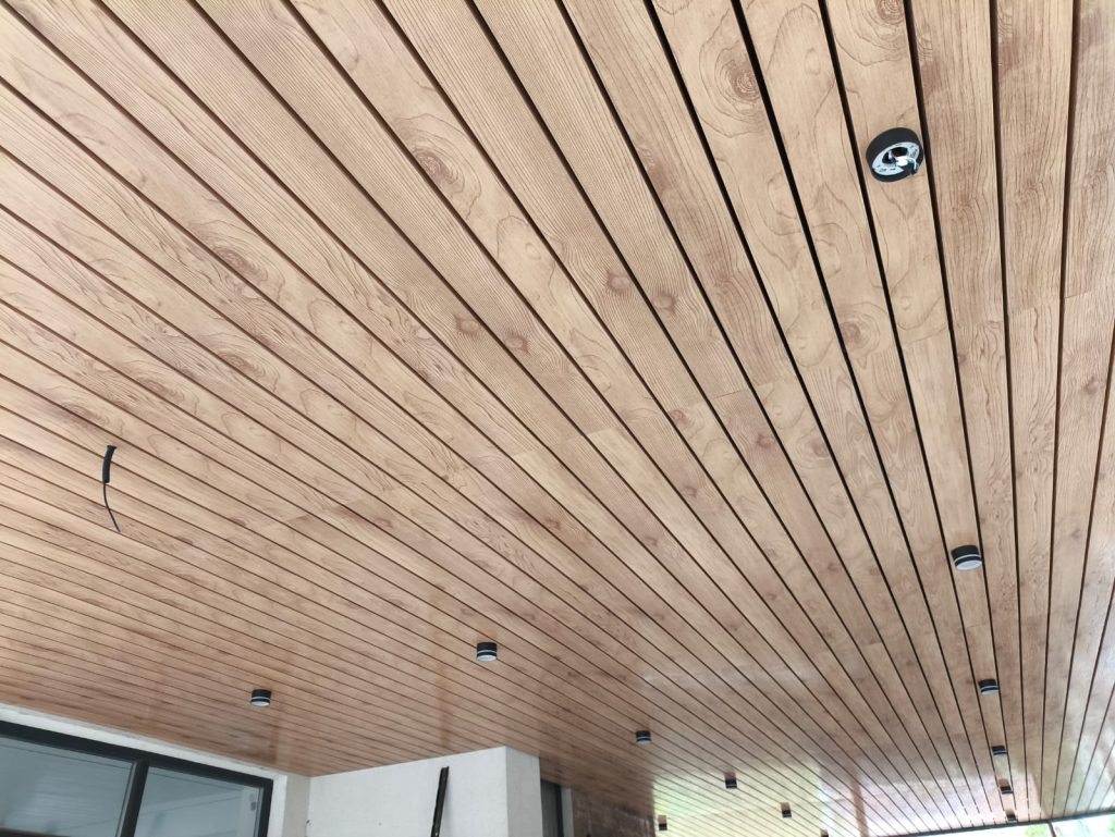 Проект Навес Загородный дом .Панель 50/50-50.  Дуб 3Д. Светильник 1.0 м 45 Вт. 4000 К.