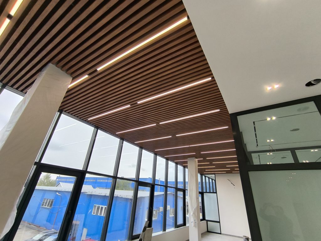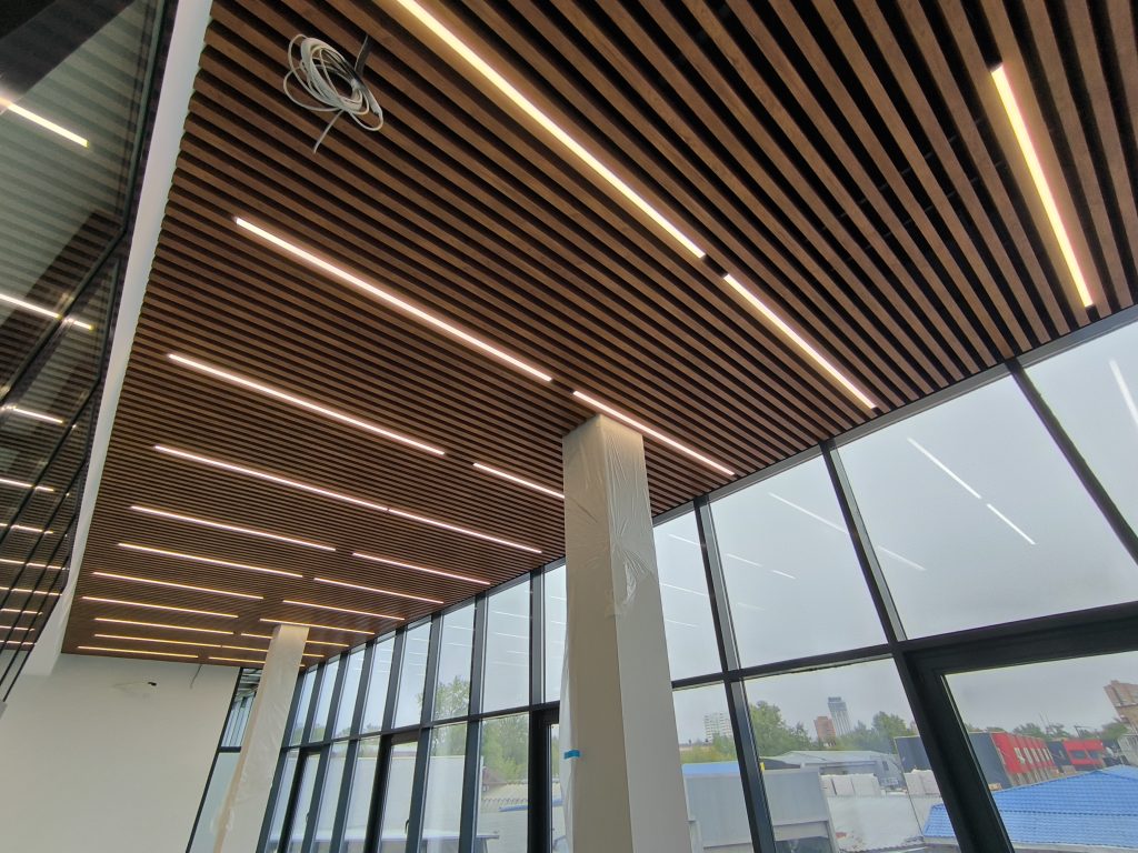 Проект Офис.Химки. Панель 40/60-35 Дуб 3Д. Светильник 1,5 м 30 Вт, 4000 К.